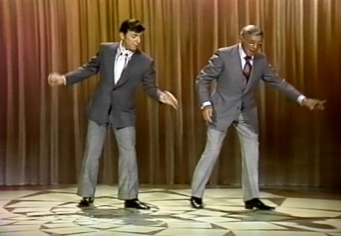 Left: "I'll Never Fall in Love Again" ~ Donald O'Connor & Bobby. Right: Just Chat ~ Carl Reiner & Bobby.